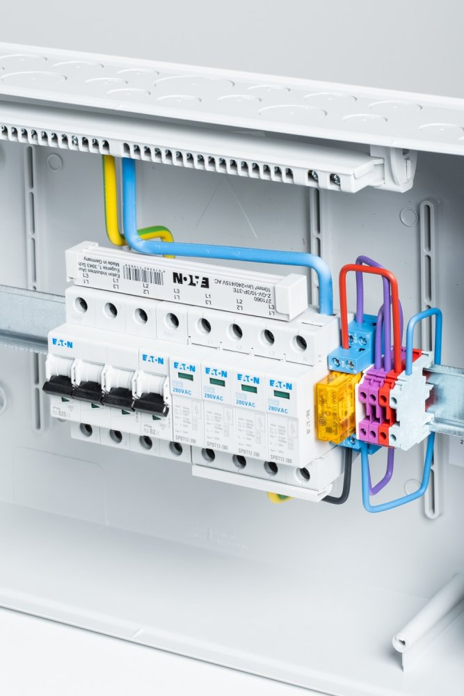 1× Svodič přepětí třídy T1+T2 (B+C), 4pól sada pro TN-S (EATON SPBT12-280/4)