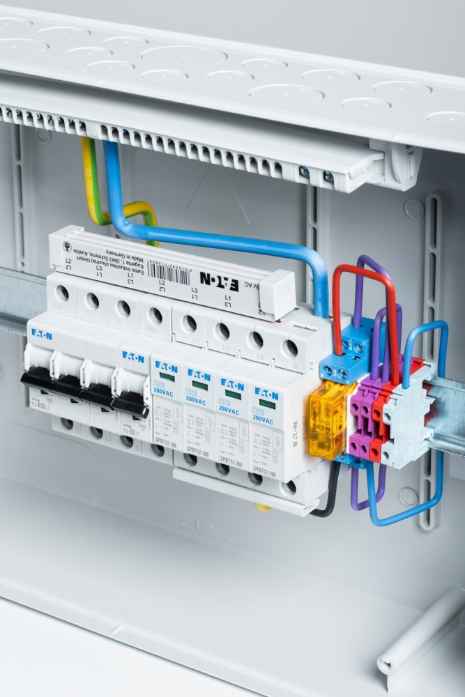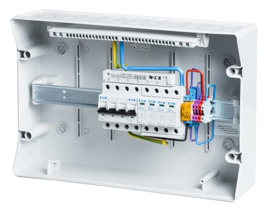 1× Svodič přepětí třídy T1+T2 (B+C), 4pól sada pro TN-S (EATON SPBT12-280/4)