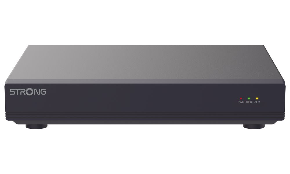 Záznamové zařízení pro 4 IP kamery s podporou PoE napájení. Povoleny kombinace různých rozlišení do 8 Mpx a datový tok do 512 Mb/s. Zařízení podporuje také dekódování H.265+, díky kterému můžete ušetřit až 75 % datového objemu. K dispozici je jedna pozice pro SATA pevný disk s kapacitou až 8 TB. Aplikace Vision by STRONG umožňuje snadnou správu sítě.