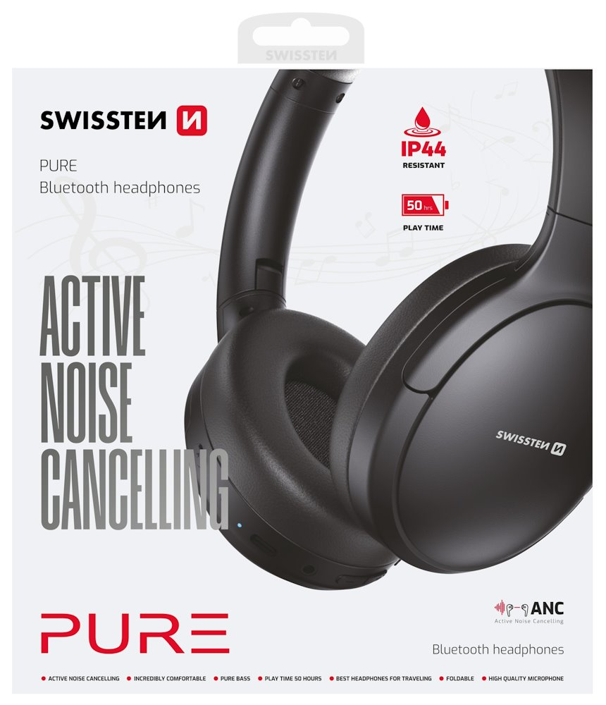 Náhlavní headset SWISSTEN PURE pro poslech hudby, ozvučení multimédií i komfortní telefonní hovory. Sluchátka jsou vybavena velkými náušníky a funkcí ANC, která slouží k aktivnímu potlačení okolního hluku. Můžete se tak naplno ponořit do poslechu, aniž by vás okolní svět rušil. Pro připojení slouží standardní 3,5mm audio port, a především technologie Bluetooth pro bezdrátovou konektivitu se smartphonem, tabletem nebo notebookem a poslech bez limitujícího kabelu.