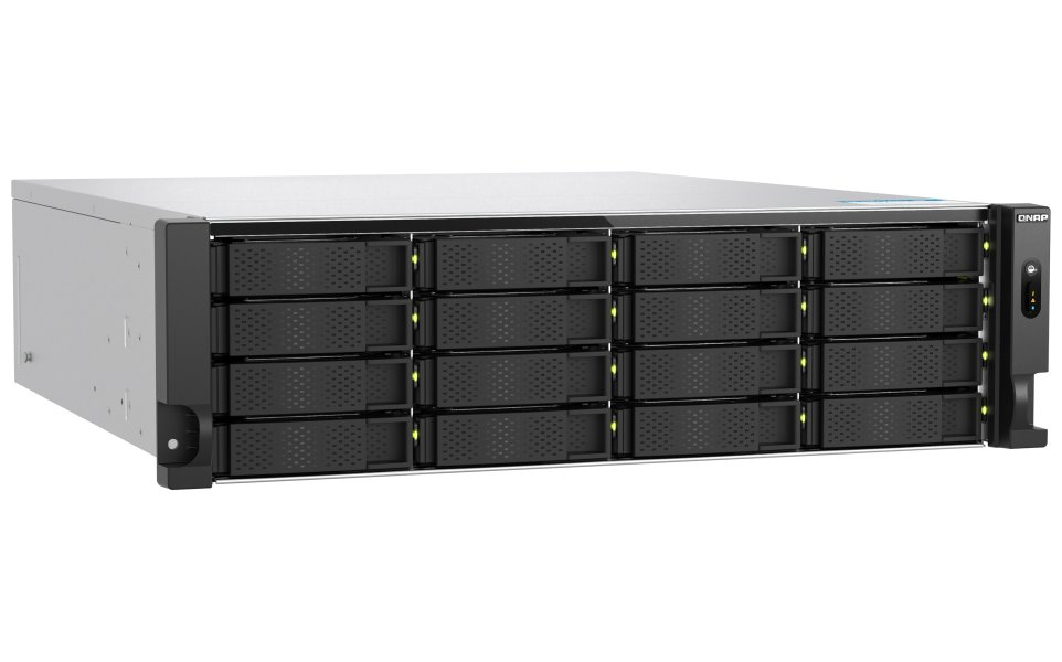 Rackový server NAS určený pro firmy hledající efektivní centralizovanou správu dat. Zařízení pohání osmijádrový procesor AMD Ryzen 7 řady 7000, o taktu 3,8 až 5,3 GHz, doplněný o 32 GB operační paměti typu DDR5. Pro ukládání dat je připraveno 16 pozic pro 3,5" nebo 2,5" disky. Síťové připojení zajišťují dva porty 10 GbE RJ-45 a dva 2,5GbE RJ-45 porty, k dispozici jsou také dva USB 3.1 konektory. V neposlední řadě je předností 2× PCIe Gen4 x4 a 1× PCIe Gen4 x8 slot, který poskytuje flexibilitu při rozšiřování funkčnosti NAS, což umožňuje instalovat různé karty pro další síťové porty nebo připojení Wi-Fi. Přítomny jsou také dva sloty M.2 NVMe, které umožňují použití SSD cache pro zvýšení výkonu čtení/zápisu. Samozřejmostí je 256bitové šifrování AES-NI pro svazky a sdílené složky. Zařízení je vybaveno redundantním napájecím zdrojem o výkonu 2× 550 W a pohání jej operační systém QTS 5.2.1.