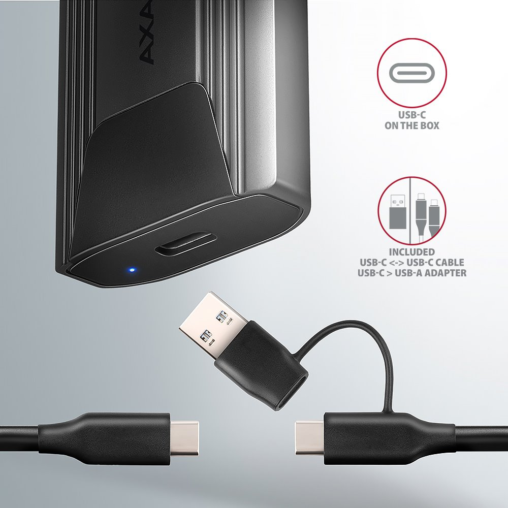 Potěší také úsporný režim během nečinnosti. Díky konstrukci a použitému čipsetu podporuje připojení disků NVMe i SATA. Externí box AXAGON EEM2-GTS2 navíc umožňuje uchycení SSD různých délek, díky čemuž je mimořádně univerzální. Tělo z hliníku zajišťuje pevnost a dlouhou životnost. Kovový plášť je navíc opatřen teplovodivou podložkou pro podporu chlazení a stabilní chod vloženého SSD.