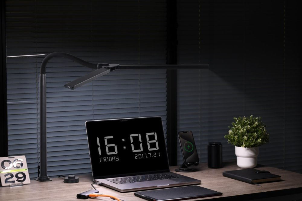 Lineární LED lampička speciálně navržená pro nasvícení monitoru i pracovní plochy. Šířka 80 cm a nastavení ramen lampy v mnoha úrovních i úhlech zajistí, že perfektně uvidíte na celou pracovní plochu. Světlo lampy je navíc bezpečné pro zrak a zajistí tak vašim očím větší pohodlí při práci. Výběr z 5 barevných teplot a plynulé ovládání jasu je možné na externím tlačítku, které je díky umístění na kabelu vždy po ruce. Spolehlivé uchycení k desce stolu zajistí kvalitní kovová svorka.