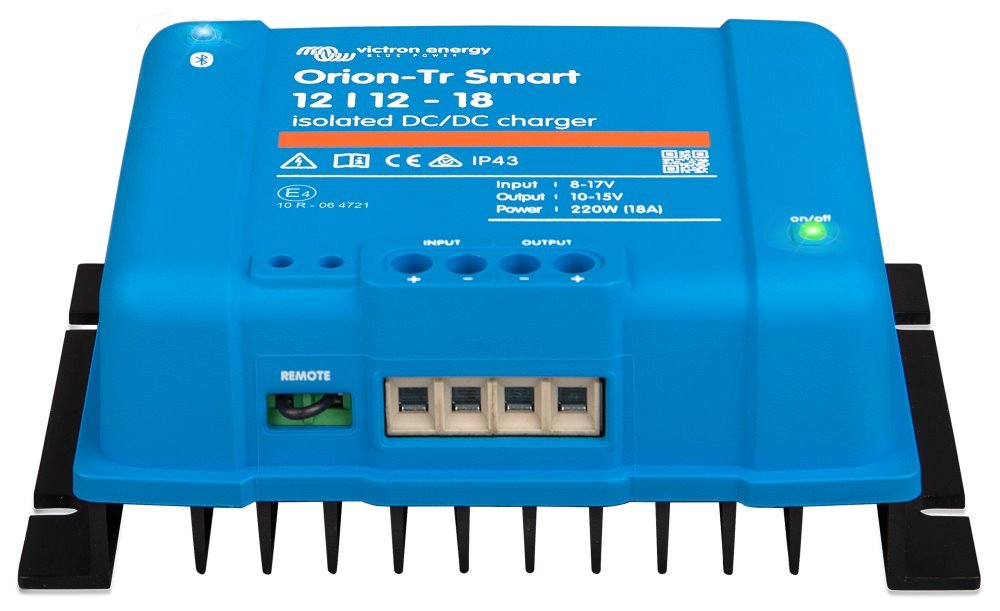 Nabíječka Orion Tr-Smart může být použita v 12 V nebo 24 V systémech a je vhodná jak pro olověné baterie, tak i pro lithiové baterie. K dispozici jsou modely až do 400 W. Pro zvýšení výstupního výkonu můžete paralelně zapojit neomezený počet jednotek. Je vhodná pro použití při okolní teplotě až do 55 °C a při plném jmenovitém výstupním výkonu až do 40 °C.