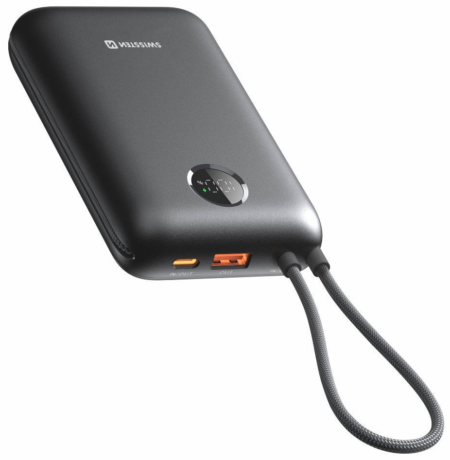 Powerbanka SWISSTEN VOLTBOX tak celkově nabízí port USB-C, port USB a integrované USB-C a Lightning kabely. Je tak vhodná pro napájení jak zařízení s operačním systémem Android, tak iOS. Kapacita 20 000 mAh je ideální pro použití a opakované nabití smartphonu, tabletu, případně drobné nositelné elektroniky jako například bezdrátová sluchátka apod. Praktický LED displej poskytuje informace o zbývající kapacitě baterie, takže hned vždy víte, kdy je čas na opětovné dobití.
