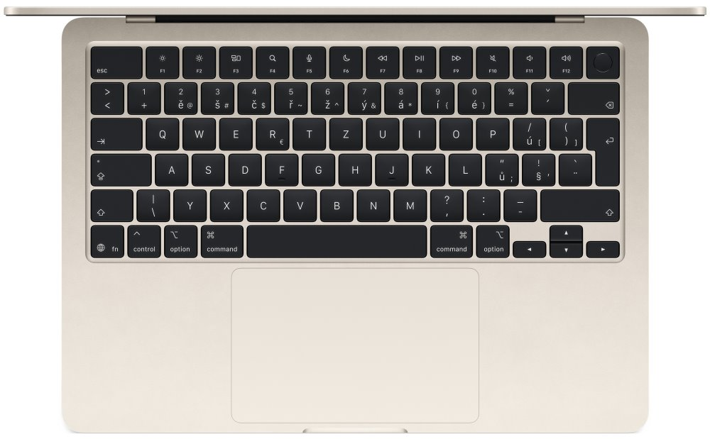 Výbava: Wi-Fi, Bluetooth, 12Mpx webkamera s funkcí Center Stage (Full HD video), tři mikrofony, čtyři reproduktory, podsvícená klávesnice, Touch ID, Force Touch trackpad, snímač okolního osvětlení, Thunderbolt 4, MagSafe 3, Apple Intelligence