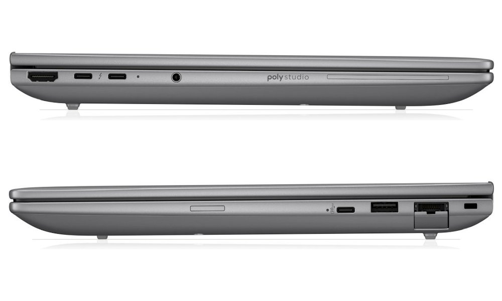 Notebook je vybaven dvěma porty USB-C s podporou Thunderbolt 4, které umožňují přenos dat rychlostí až 40 Gb/s a připojení externích displejů přes DisplayPort 2.1. Dále nabízí jeden port USB-C 3.2 Gen2 s přenosovou rychlostí 10 Gb/s, klasický USB 3.2 Gen1 port, HDMI 2.1 a gigabitový ethernet (RJ-45).