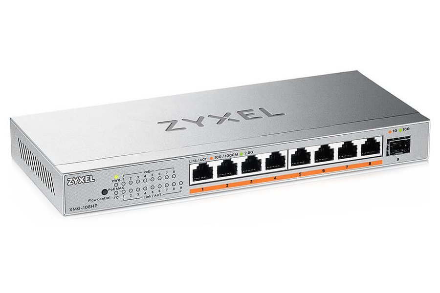 Zyxel XMG-108HP je navržen pro snadnou modernizaci a rozšíření vaší sítě na vyšší rychlost a lepší výkon. Přináší osm 2.5G Ethernet portů s automatickým vyjednáváním rychlosti (100M/1G/2.5G) a jeden 10G SFP+ port pro vysokorychlostní připojení k síti nebo NAS zařízení.