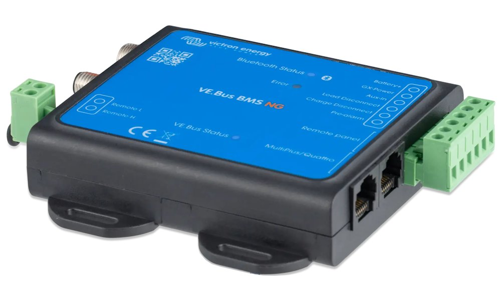Systém VE.Bus BMS NG představuje nejnovější generaci řešení pro správu baterií značky Victron Energy, speciálně vyvinutou pro řízení a ochranu lithiumových baterií typu Lithium NG (LiFePO4). Podporuje konfigurace bateriových sestav s různými napěťovými úrovněmi (12,8 V, 25,6 V, 51,2 V) a kapacitami, a to jak v paralelním, tak sériovém zapojení, což umožňuje škálování až do celkové kapacity 384 kWh. Systém poskytuje spolehlivou ochranu před pod/nadnapětím, přehřátím nebo podchlazením článků a v případě potřeby automaticky odpojuje zátěž nebo nabíjecí zařízení.