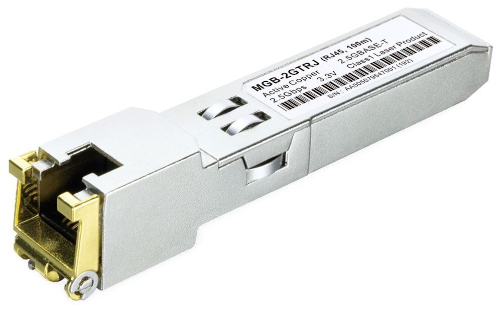 Výkonný 2.5GBASE-T SFP transceiver s RJ-45 konektorem pro vysokorychlostní ethernetové sítě.