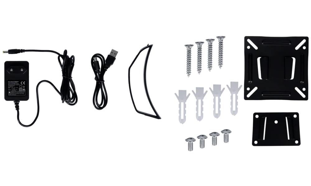 • 1× malý držák na zeď (montážní deska) + 4× šroub/vrut