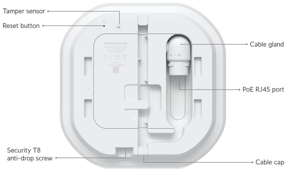 Integrovaný tamper spínač detekuje pokusy o manipulaci se zařízením. Tovární reset tlačítko umožňuje rychlé obnovení výchozího nastavení.