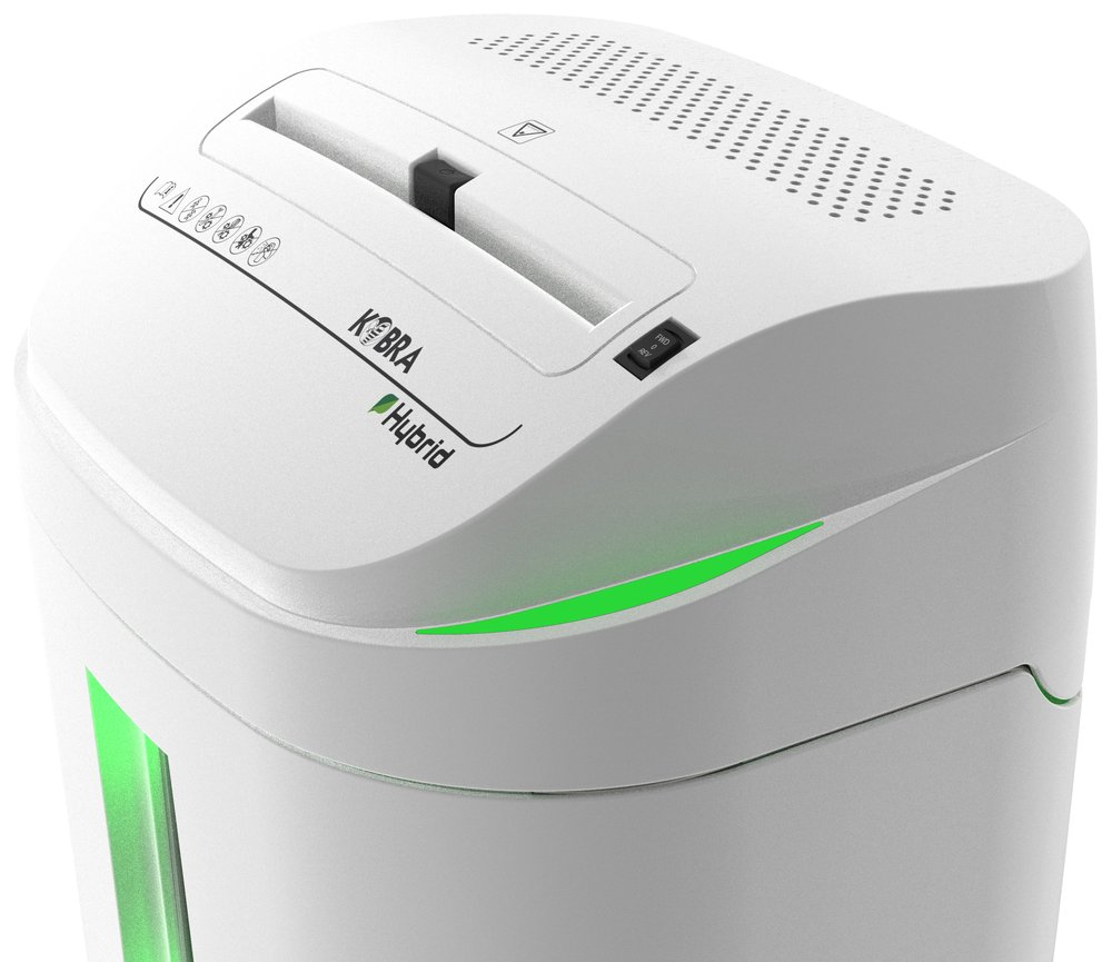 Osobní skartovačka KOBRA C4-HYBRID v sobě spojuje výkon, elegantní design a chytrou ekologii. Tento model zvládne víc než jen rozřezat pár nepotřebných papírů a stane se praktickým pomocníkem v každé moderní kanceláři. Skartovačka KOBRA C4-HYBRID disponuje systémem Hybrid Power Management, který umožňuje ukládat energii a až 15 % skartaci na tuto energetickou zásobu. Před koncem skartace se odpojí od hlavního zdroje, díky čemuž šetří elektřinu.