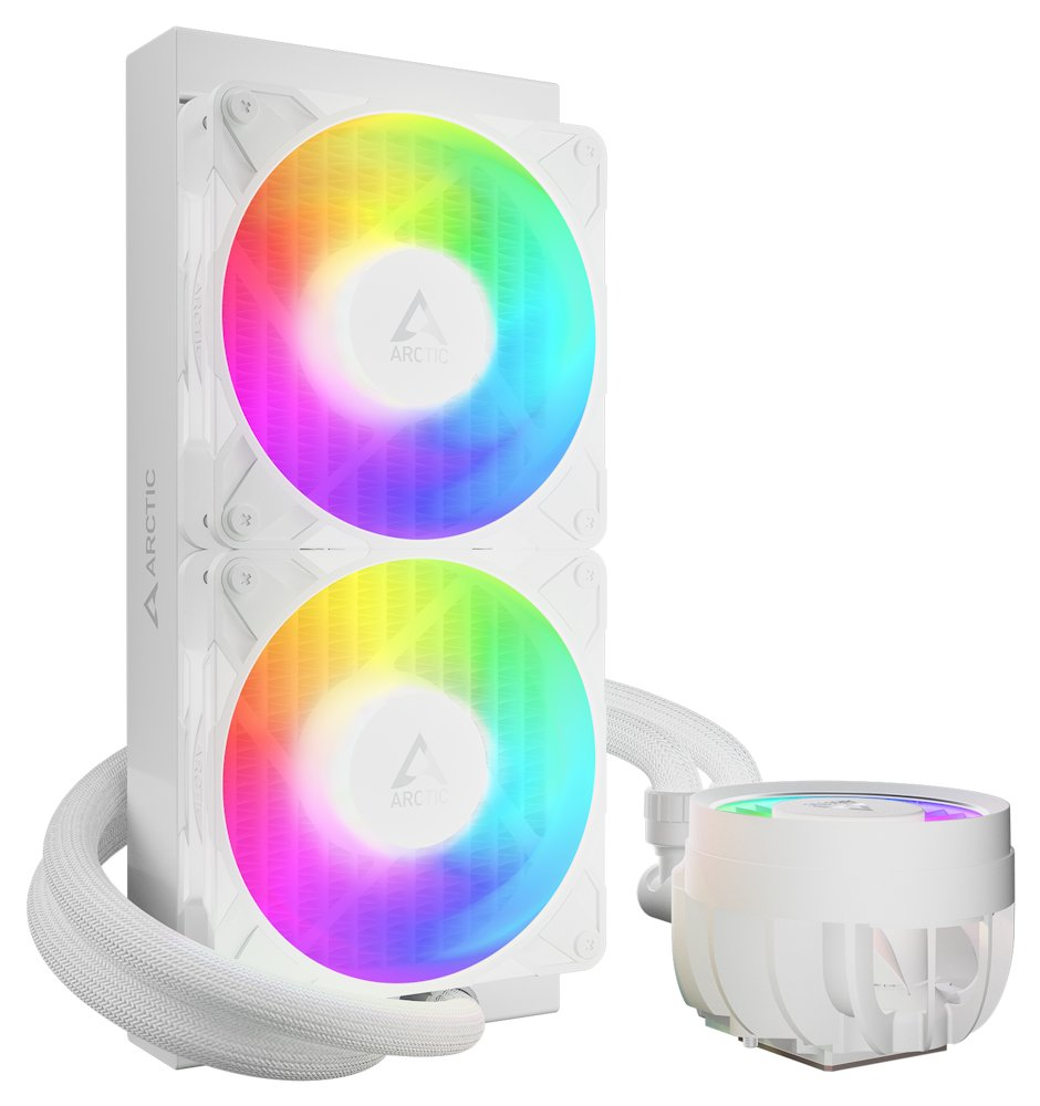Chladič ARCTIC Liquid Freezer III Pro 240 ARGB disponuje dvojicí 120mm ventilátorů ARCTIC P12 Pro s barevným ARGB podsvícením, které při nižších otáčkách pracují tiše, ale zároveň to dokážou patřičně rozbalit ve vysoké zátěži. Navíc se postarají také o stylové podsvícení v rámci PC sestavy.