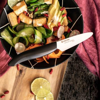 Keramické nože jsou vyrobeny ze zirkonové keramiky – extrémně tvrdého materiálu, který si udržuje ostrost po dlouhou dobu. Ergonomicky tvarovaná plastová rukojeť se pohodlně drží v ruce a poskytuje pevný úchop pro bezpečnou manipulaci.
