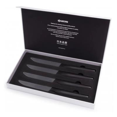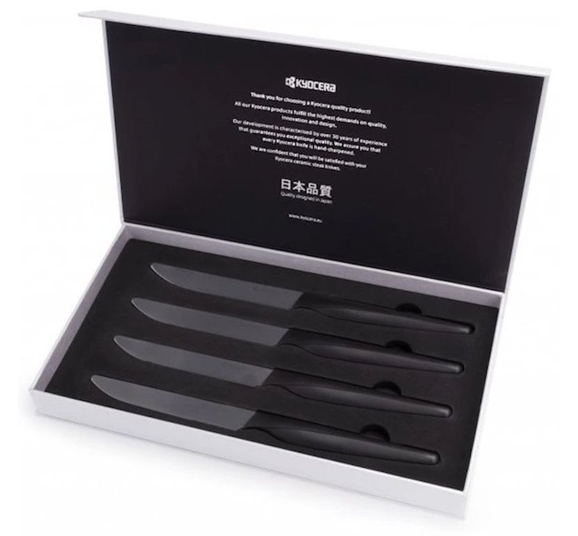 Pro milovníky masa není nic lepšího než dokonale ugrilovaný, křehký a šťavnatý steak. Aby byla zachována dokonalost a maximální požitek od přípravy až po stolování, steakové nože Kyocera s extra ostrými, vroubkovanými keramickými čepelemi, umožňují čisté a snadné krájení bez nutnosti vyvíjet nadměrnou sílu. Čepele jsou vyrobeny ze zirkonové keramiky – extrémně tvrdého materiálu, který udržuje ostrost. Jejich elegantní vzhled a ergonomicky tvarovaná rukojeť dodají sofistikovanost každému prostírání.