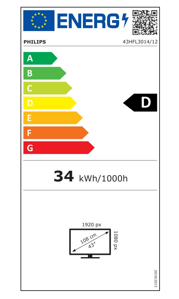 Displej: 43" LED Full HD, 1920 × 1080 px, jas 250 cd/m2