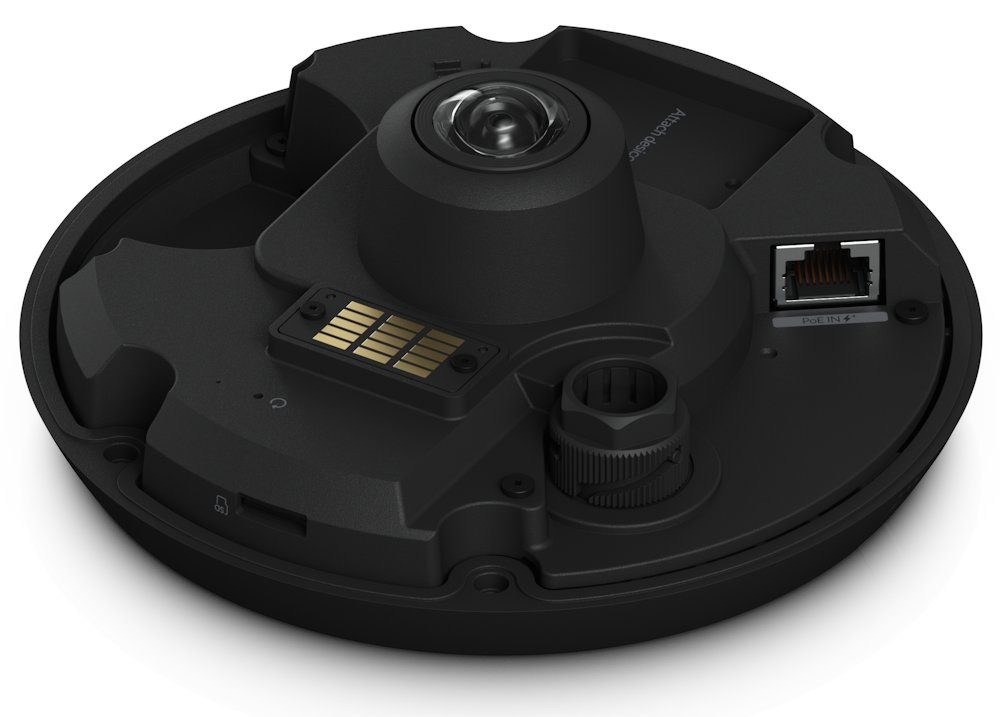 Standardně dodávaná s povrchovým držákem, volitelně lze dokoupit AI 360 Junction Box, Camera Dual Mount nebo Arm Mount pro různé instalační požadavky. Kompaktní rozměry 147 × 147 × 65,5 mm a hmotnost 610 g usnadňují instalaci.