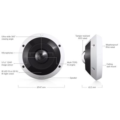 Profesionální ultra-širokoúhlá IP kamera s panoramatickým 360° pokrytím a rozlišením 12 Mpx.