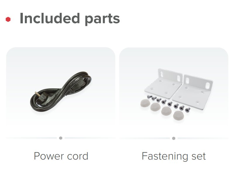 Ethernet porty: 17× Gigabit (8× s PoE-out)