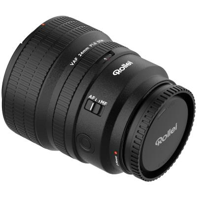 Obsah balení: Rollei 24 mm FE, sluneční clona RH 24-35, přední krytka, zadní krytka E-mount