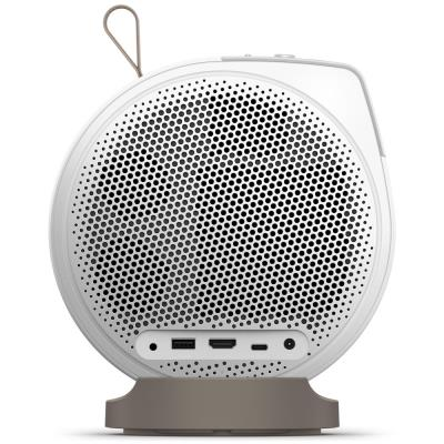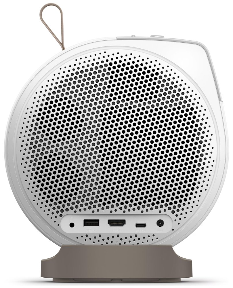 K dispozici je HDMI 2.0b s HDCP 2.3, USB 2.0 s napájením 1 A, USB-C s Power Delivery (vstup 20 V 3–5 A, výstup 5 V 1,5 A / 9 V 1 A), audio výstup 3,5 mm jack a zpětný zvukový kanál HDMI ARC 5.1. Bezdrátová konektivita zahrnuje Wi-Fi 802.11 a/b/g/n/ac (2,4 GHz / 5 GHz) a Bluetooth 5.0. Projektor lze používat jako samostatný Bluetooth reproduktor.