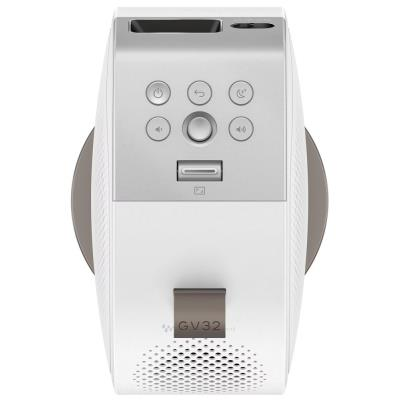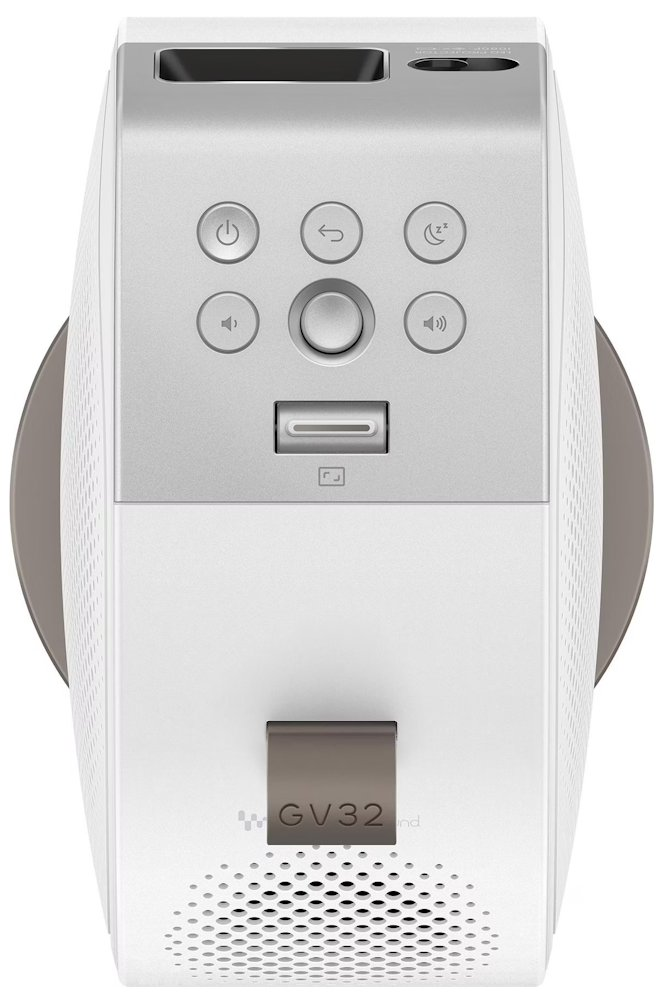 Projektor BenQ GV32 nabízí unikátní flexibilní základnu s možností otáčení o 360° horizontálně a 135° vertikálně, což umožňuje promítání z libovolného úhlu. Díky Full HD rozlišení 1920 × 1080 px a jasu 500 ANSI lumenů s technologií DLP LED poskytuje kvalitní obraz s 95% pokrytím barevného prostoru Rec. 709 a kontrastním poměrem 100 000 : 1. LED světelný zdroj má životnost až 30 000 hodin v úsporném režimu.