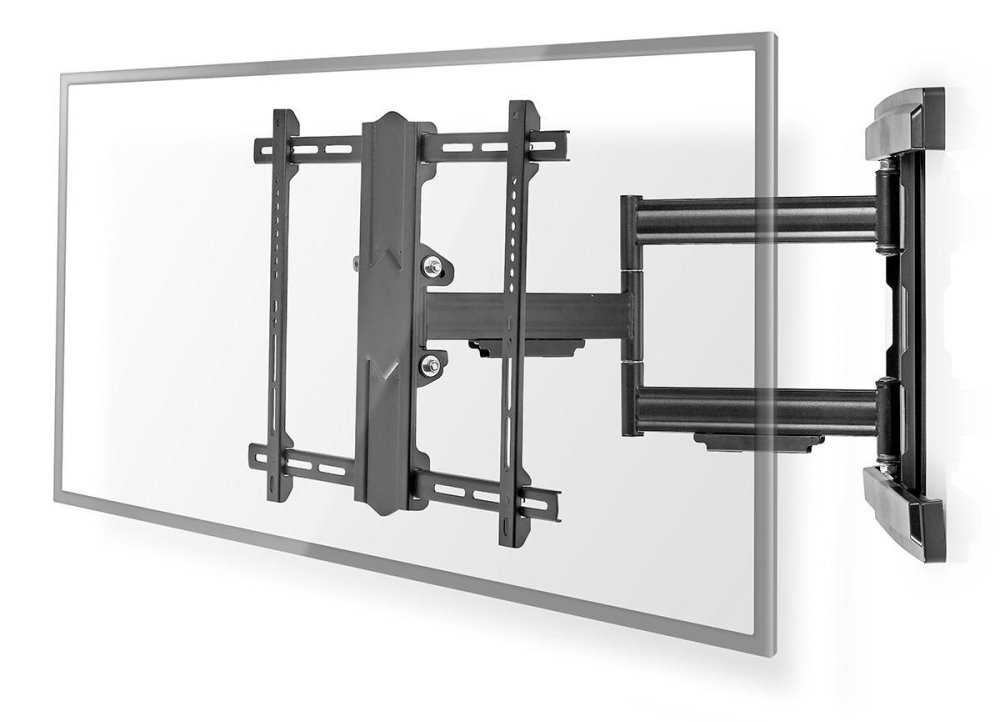 Držák využívá dvojramenný design se třemi otočnými body, který poskytuje maximální flexibilitu při nastavování polohy televizoru. Můžete televizor vysunout až 650 mm od stěny, otočit doleva nebo doprava až o 180° a naklonit pro eliminaci odlesků.