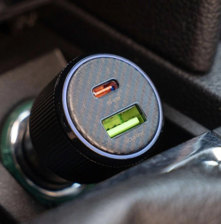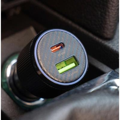 Výkonná autonabíječka s podporou rychlého nabíjení PD 3.0 a QC 3.0 pro současné nabíjení dvou zařízení.