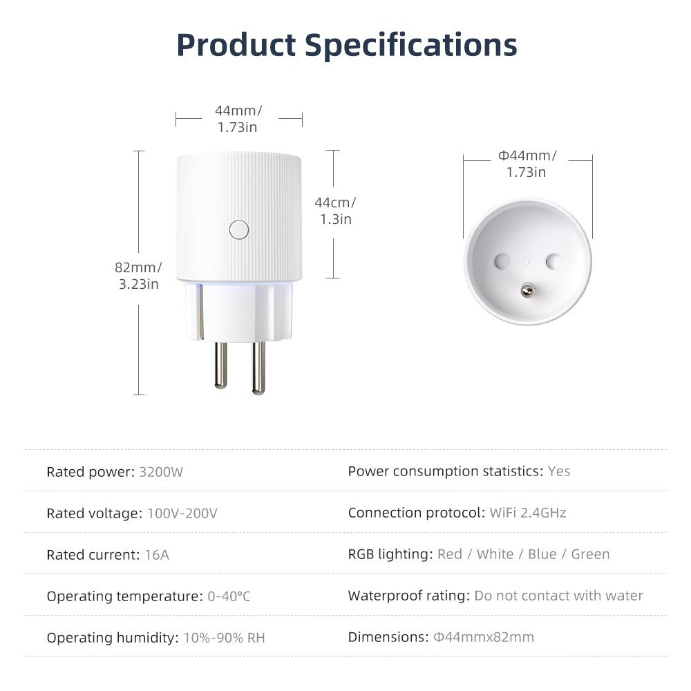 S maximálním zatížením 3500 W a proudem 16 A zvládne napájet i výkonnější spotřebiče. RGB podsvícení poskytuje okamžitou vizuální zpětnou vazbu o aktuálním zatížení, díky čemuž máte přehled o stavu připojeného zařízení na první pohled. Tenké tělo zásuvky umožňuje úsporné umístění bez zbytečného blokování okolních zásuvek.