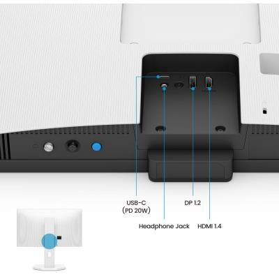 Monitor disponuje vstupy HDMI 1.4, DisplayPort 1.2 a USB-C s podporou DisplayPort Alt Mode. USB-C port umožňuje připojení notebooku jediným kabelem pro přenos obrazu, dat i napájení až 20 W. K dispozici jsou integrované reproduktory 2 × 2 W a výstup na sluchátka. Monitor podporuje HDCP 1.4 a technologii AMD FreeSync.
