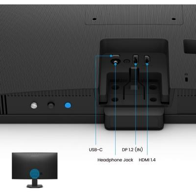 Kompletní konektivita zahrnuje HDMI 1.4, DisplayPort 1.2 a USB-C s podporou DisplayPort Alt Mode pro přenos obrazu a dat. Monitor disponuje integrovanými reproduktory 2 × 2 W a konektorem pro sluchátka. Náklon -5° až +20° umožňuje nastavení optimálního úhlu pohledu. Podpora VESA 100 × 100 mm zajišťuje možnost montáže na stěnu.