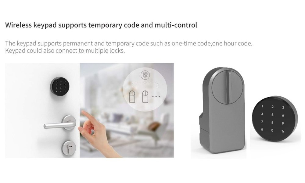Zámek je kompatibilní s hlasovými asistenty Amazon Alexa, Apple Siri (zkratky) a Google Assistant, aplikace je k dispozici v 60 jazycích pro platformy iOS a Android. Výdrž na bateriích 4× AA dosahuje až 300 dnů, stejně jako u přiložené klávesnice s bateriemi 2× AA.