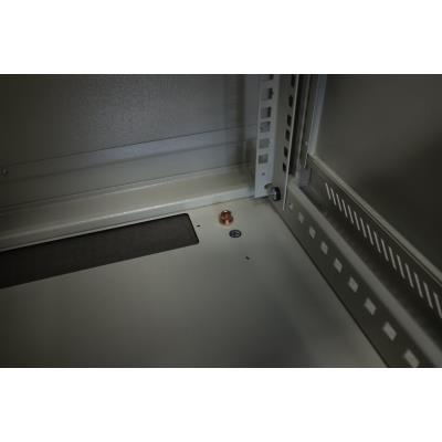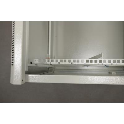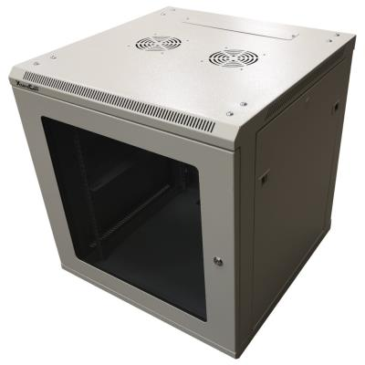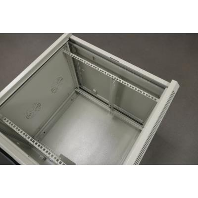 Rozvaděč, 19", na stěnu, jednodílný, výška 12U, 600×600, složený, skleněné dveře, nosnost 60kg, šedý, bez krabice, pouze osobní odběr