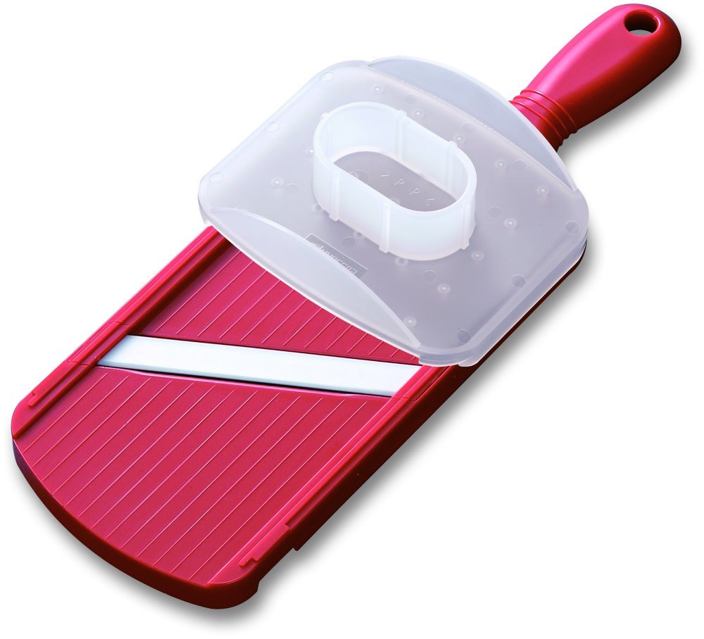 Univerzální kráječ vhodný na ovoce a zeleninu (brambory, mrkev, jablka, okurky aj.) pro přípravu předkrmů, ozdob a salátů. Kráječ je vybaven oboustranným ostřím z nerezavějící oceli. Součástí je plastová úchopka jako ochrana proti říznutí.